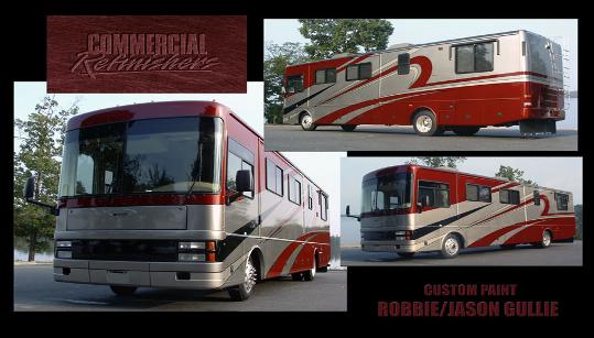 Paint is applied in Commercial Refinishers'™ 64 foot heated crossdraft paint booth providing you with a clean, properly cured paint finish. High volume low pressure paint equipment delivers more paint to your vehicle (less waste). Trained painters use a full complement of DuPont® tints and finishes to match your vehicles color.