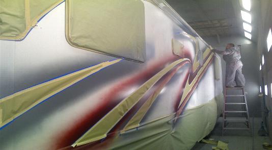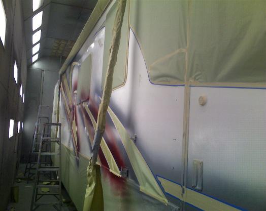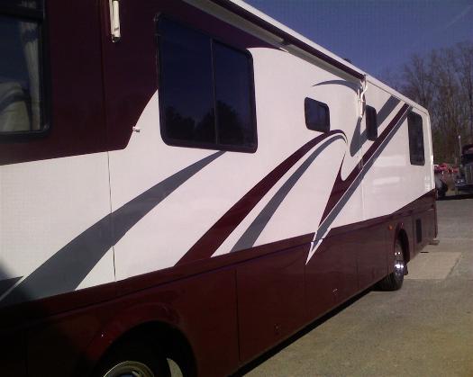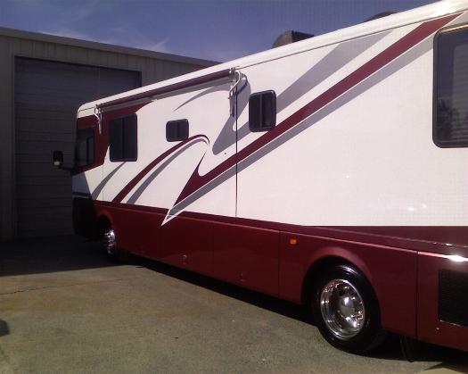 We recently painted a ten-year-old RV that suffered from faded paint and fiberglass gelcoat.